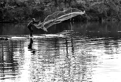 4月7日清晨,武义县履坦镇履三村的渔民撑着竹筏在武义江撒网捕鱼。昔日难觅鱼虾踪影的武义江,通过水环境整治和生态修复,浑浊的水体如今重现洁净。