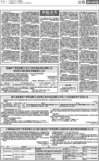 浙越资产管理有限公司与宁波双洲纺织品有限公司 债权转让通知暨债务催收联合公告