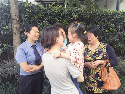 在对王某的多次提审中,任祎俊了解到,王某遗弃悦悦,很大一部分原因是她害怕父母知道自己非婚生子,更害怕改变自己在父母眼中的乖乖女形象。“其实王某很爱悦悦,也想和悦悦一起生活,但她觉得父母是绝对不会接受的。”考虑到这层原因,检察官们经过努力,开通了绿色通道,让王某和父母有了亲情会见的机会,还带着王某的父母去福利院看望悦悦。女儿的眼泪和外孙女的天真,彻底融化了王某父母心里的坚冰,他们不仅谅解了女儿,还表示支持她抚养悦悦,回到老家后开始准备接纳悦悦一起生活。