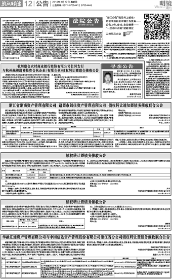 华融汇通资产管理有限公司与中国信达资产管理股份有限公司浙江省分公司债权转让暨债务催收联合公告