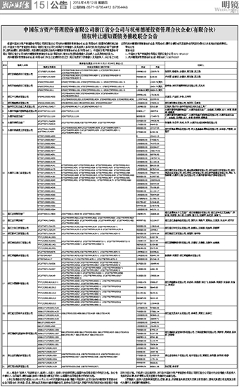中国东方资产管理股份有限公司浙江省分公司与杭州德展投资管理合伙企业(有限合伙) 债权转让通知暨债务催收联合公告