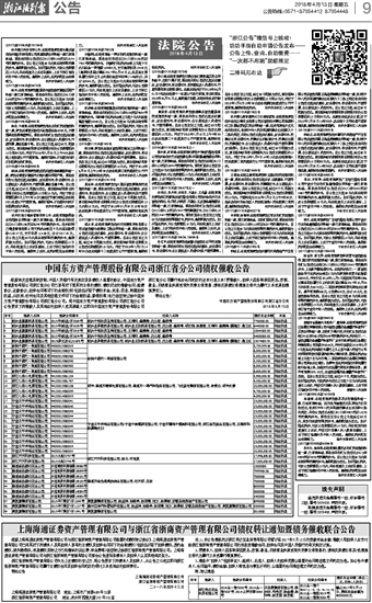 中国东方资产管理股份有限公司浙江省分公司债权催收公告