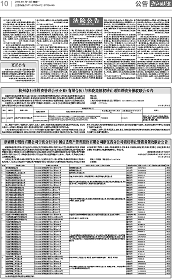浙商银行股份有限公司宁波分行与中国信达资产管理股份有限公司浙江省分公司债权转让暨债务催收联合公告