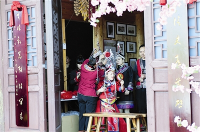 4月18日上午,杭州畲族馆举行“桃里畲家——杭州畲族三月三活动”,通过品畲家乌饭、唱畲家山歌、展畲家拳法和行畲家婚礼等民俗活动,展现畲民风采,传承畲族传统文化。本报记者 陈立波 摄
