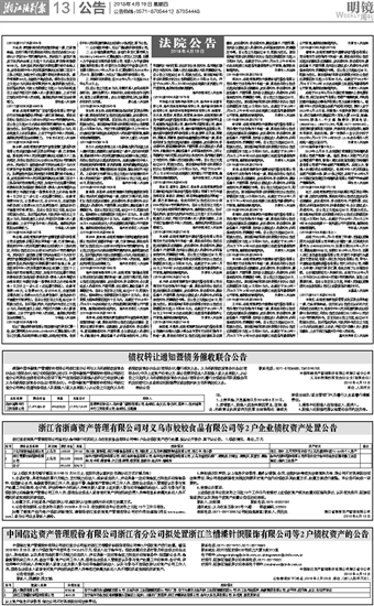 浙江省浙商资产管理有限公司对义乌市姣姣食品有限公司等2户企业债权资产处置公告
