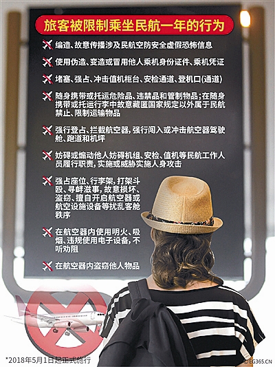 《意见》主要包括六部分内容,对限制乘坐民用航空器的人员范围、信息的采集和发布、名单的移除、权利救济和相关宣传等事项都进行了规定。《意见》规定,旅客在机场或航空器内实施下列9种行为被公安机关处以行政处罚或被追究刑事责任的,将在一年内无法乘坐民用航空器。具体9种行为包括:编造、故意传播涉及民航空防安全虚假恐怖信息的;使用伪造、变造或冒用他人乘机身份证件、乘机凭证的;堵塞、强占、冲击值机柜台、安检通道、登机口(通道)的;随身携带或托运国家法律、法规规定的危险品、违禁品和管制物品的;在随身携带或托运行李中故意藏匿国家规定以外属于民航禁止、限制运输物品的;强行登占、拦截航空器,强行闯入或冲击航空器驾驶舱、跑道和机坪的;妨碍或煽动他人妨碍机组、安检、值机等民航工作人员履行职责,实施或威胁实施人身攻击的;强占座位、行李架,打架斗殴、寻衅滋事,故意损坏、盗窃、擅自开启航空器或航空设施设备等扰乱客舱秩序的;在航空器内使用明火、吸烟、违规使用电子设备,不听劝阻的;在航空器内盗窃他人物品的。