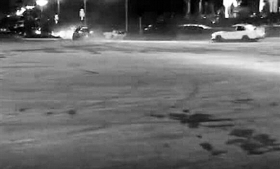 而另一段监控显示,两辆白色轿车猛然加速飙车时,正好有两名跑步健身的行人穿过。