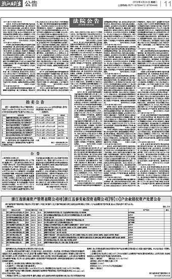 浙江省浙商资产管理有限公司对【浙江名泰实业投资有限公司】等【13】户企业债权资产处置公告