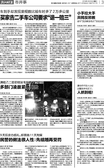 验车时行驶里程数显示5万多公里,开了几天却发现其实已经近8万公里。为此,周女士把卖二手车的经纪公司告上了法庭,要求“退一赔三”。24日,这起买卖合同纠纷在杭州拱墅区法院开打。