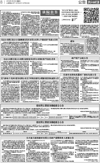 信达公司浙江省分公司浙江意欣家具有限公司债权资产处置公告单