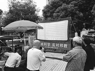 庆元县反邪教协会瞄准这一新兴宣传阵地,把反邪教警示教育宣传活动融入其中,通过屏幕上滚动播放反邪教宣传标语、悬挂横幅、发放手册等形式,让群众在娱乐中学习反邪教知识。