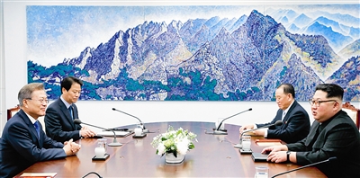在离军分线不远的“和平之家”,金正恩与文在寅举行会谈,讨论半岛无核化、永久和平机制、韩朝关系等重要话题。朝韩媒体都以“历史性的会晤”来表达南北各界的期待。朝鲜《劳动新闻》称这是“民族史上的大事件”。韩国《韩民族日报》的社论称之为“半岛命运的转折点”。