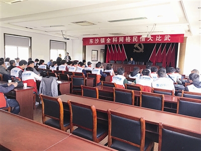 大比武考的是网格员对辖区的熟悉度,充分调动了网格员的工作积极性。“‘网格·家’的设立不仅要让群众感受到‘家’的温暖,也要让网格员有‘家’的归属感。”姚旭东向记者介绍说,民情大比武只占到网格员总考评的1/5,除此之外东沙镇还建立了“周督查、月通报、季考评”网格员考核制度,实行以绩定星、以星定酬,并按照“费随事转”原则加大条线经费统筹力度,建立专项资金,保障网格员劳务费、工作补贴和各类奖金,实现网格员任务叠加、收入增加。