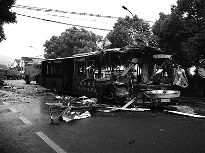 本报讯 5月7日下午,绍兴市柯桥区一辆61路公交车,与一辆自卸车对向相撞,当场造成乘客受伤。