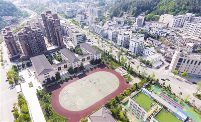 | 青川县乔庄镇中心小学学校操场 (4月17日无人机拍摄) |