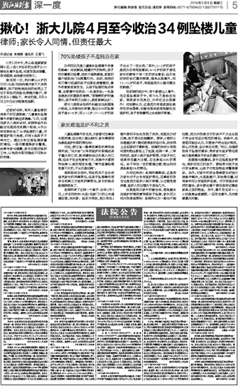 揪心!浙大儿院4月至今收治34例坠楼儿童