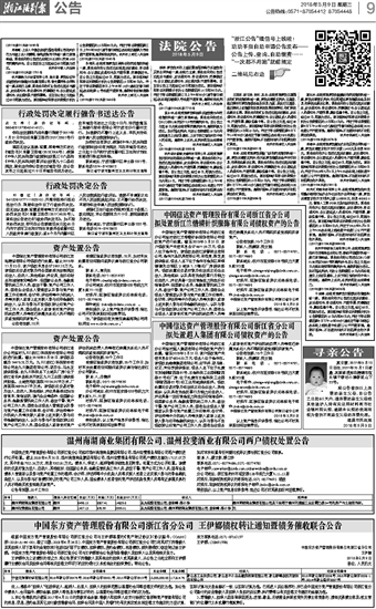 中国信达资产管理股份有限公司浙江省分公司 拟处置浙江兰惜蝶针织服饰有限公司债权资产的公告