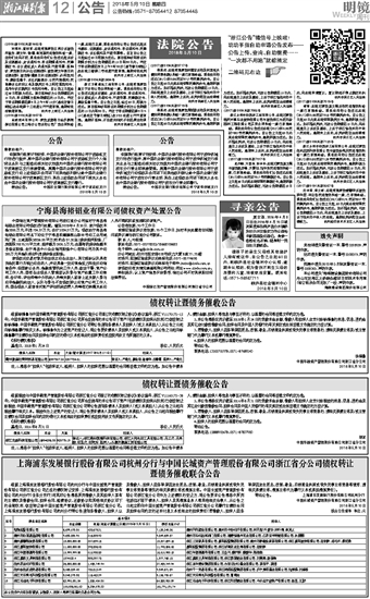 上海浦东发展银行股份有限公司杭州分行与中国长城资产管理股份有限公司浙江省分公司债权转让 暨债务催收联合公告
