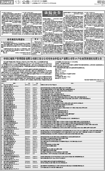 中国长城资产管理股份有限公司浙江省分公司对舟山中茂水产有限公司等49户企业贷款债权处置公告