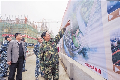 | 2010年3月1日,来自浙江省援建指挥部的建设者们正在青川县乔庄高中灾后重建项目工程实地勘察 |