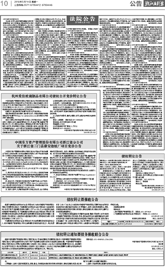 杭州爱佳玻璃制品有限公司债权公开竞价转让公告