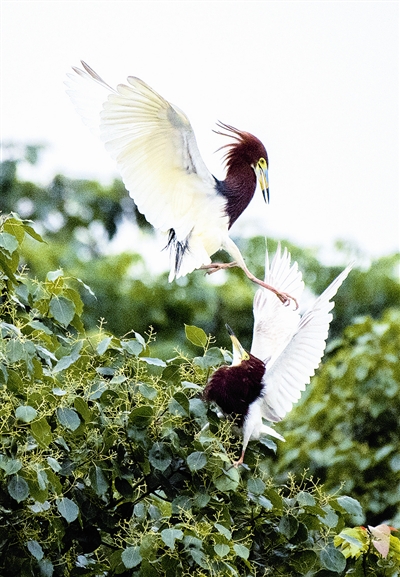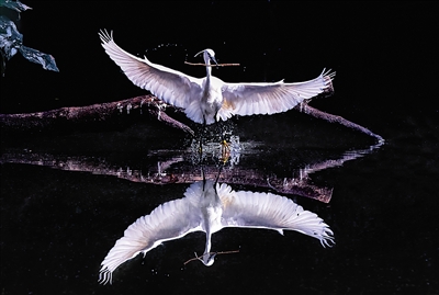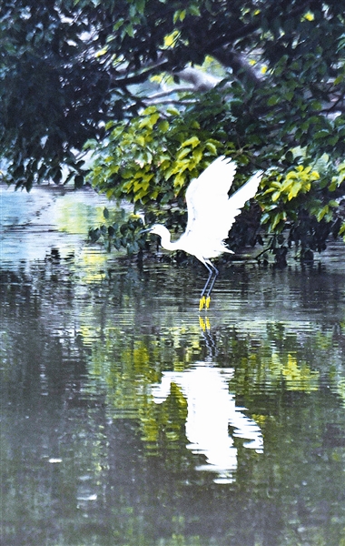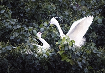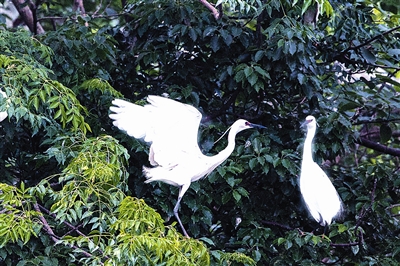 仿佛知道这天会有远方来的客人,勤快的白鹭们早早行动起来,白色的身影掠过水面,在空中划过一道道优美的弧线,在摄影师们的镜头前尽情展示身姿。大伙儿的耳边,只听得阵阵鸟鸣和翅膀的拍打声。