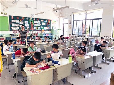 “我是今年开学后参加课后托管的,妈妈可开心了,她说终于不用请假来接我放学了。”正在朗诵的一年级学生董雅宁说,“我也很喜欢在学校完成作业,这样回家就能好好玩了。”