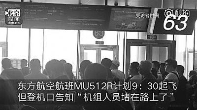 近日,东方航空航班MU512R原计划9:30在北京首都机场起飞,但乘客被告知“机组人员堵在路上了”。工作人员称,头天晚上航班大面积延误,机组人员因此被安排到北京昌平区住,虽然出发较早,但还是堵在路上了。最终该航班10:37起飞。