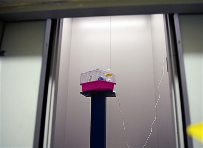 在电梯轿厢内的笼子里放置2只实验小白鼠,模拟人员被困时的情况;
