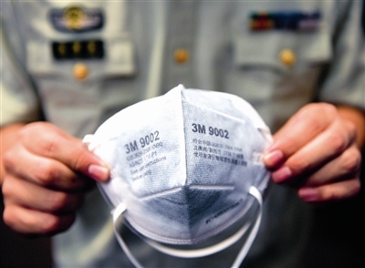 | 实验结束,记者佩戴的口罩已经变成了蓝色 |