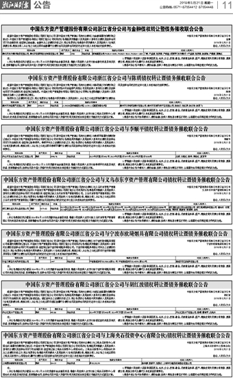 中国东方资产管理股份有限公司浙江省分公司与上海央石投资中心(有限合伙)债权转让暨债务催收联合公告