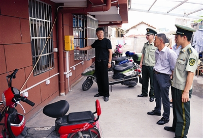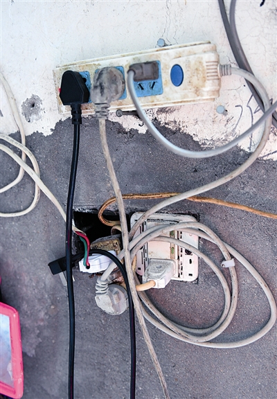 当天,记者首先走进村口一处出租房,只见疏散通道内没有堆放杂物,整洁的楼道里安装了应急照明灯、紧急疏散指示标志、声光手动报警器等设备,电气线路也已经套管处理,每层出租房门口显眼位置还放置了2瓶灭火器。随后,记者跟随消防人员来到村中心的部分出租房。楼梯口违规停放电动车,用从天而降的电线违规给电动车充电,楼道内违规堆放杂物,出租房内电气线路死拉乱接,房间内与床仅两三米的位置违规使用明火灶具……消防人员一一向记者指出消防安全隐患之处。