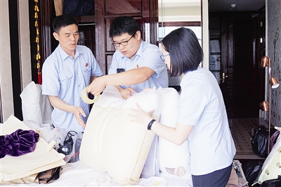 法官请保姆将小丽儿子及生活必须品一起带走。在公证人员、社区干部、片区民警、物管人员等人的见证和监督之下,执行干警一一清点物品,登记造册,打包搬运,将物品妥善安置到事先准备的安置地点。