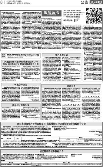 浙江省浙商资产管理有限公司、杨新勇债权转让通知暨债务催收联合公告