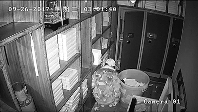幸运的是,监控还是拍下了一些重要画面:盗贼至少有两人,均是蒙面、身穿迷彩服从墙洞中钻入密室的,在阿华报警前的一段时间里,盗贼多次光顾过密室;可惜的是,他们大规模搬运赃物的影像没能保存下来。