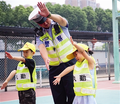 警宝们参观了警队、学习了交通指挥手势,还跟随警爸警妈们上路对交通违法行为进行劝导。“站得我脚都酸了,原来爸爸妈妈每天工作这么辛苦。”警宝们纷纷感叹。