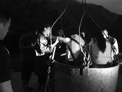 当晚7点40分左右,民警发现黄岩枕流景区内有9名游客被困。这9人中有2名孕妇、1名老人。当时,他们想等到雨停后再过溪,结果发现雨量太大、溪水暴涨,根本过不了溪。见到民警,原本有些慌张的游客稍稍安心了。