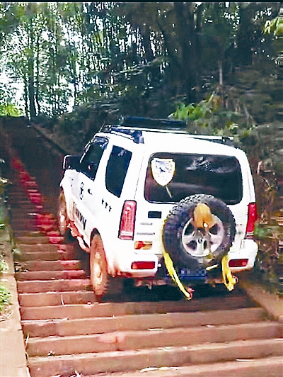 越野车“爬梯”的视频在宜宾当地被传播后,引发许多市民的谴责。“台阶是供行人通过的,这样的行为既危害行人的安全,也对台阶造成了破坏。”一位网友说道。