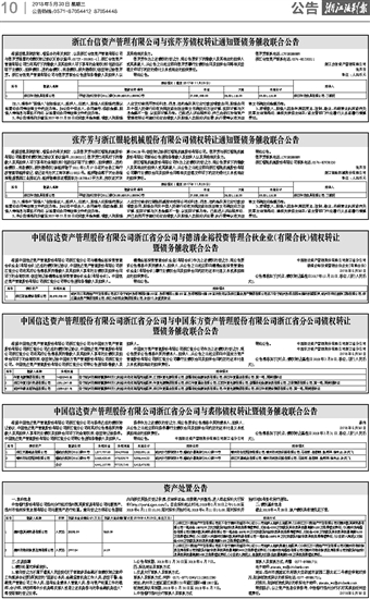 中国信达资产管理股份有限公司浙江省分公司与中国东方资产管理股份有限公司浙江省分公司债权转让 暨债务催收联合公告