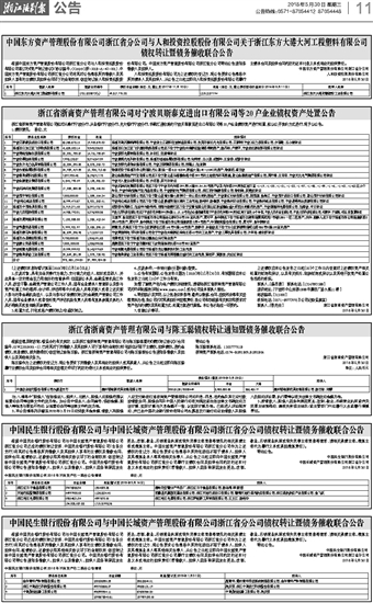 中国东方资产管理股份有限公司浙江省分公司与人和投资控股股份有限公司关于浙江东方大港大河工程塑料有限公司 债权转让暨债务催收联合公告