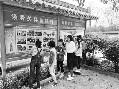 | 丰燕妍带领孩子们走进村里的“文化廊” |