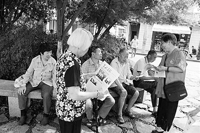 在平时的反邪教宣传中,许多年轻干部存在与老年人沟通交流不便等问题,而这支队伍弥补了这一短板。成员中多为退休的党员干部,他们能读懂反邪教材料,也能将其“翻译”转化为老年人能听懂能接受的景宁话版本,成为了反邪教宣传工作中的一支主力军。5月21日,在仙童社区,“畲乡夕阳红”宣传队来到老年人聚集的公园发放反邪教宣传资料,并且针对部分老年人不识字、视力减退等情况,用方言读报的形式向老年人宣传反邪教知识。短短一个上午,500份宣传资料便分发一空。