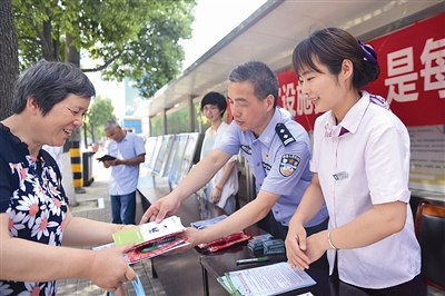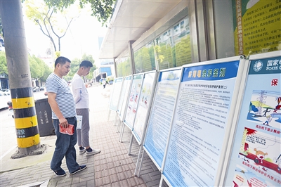 电力公司通过悬挂横幅、展示海报、张贴标语、发放宣传单等形式,宣传了用电安全和保护等相关知识,吸引不少路过行人前来观看。