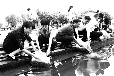 近日,东阳市检察院的检察官参加了该市举办的鱼类增殖放流活动,以迎接2018年全国放鱼日的到来。此次活动共向东阳江投放花莲、白鲢等鱼苗200多万尾,将进一步净化水质,改善东阳江水域生态环境。活动中,检察官还就检察机关公益诉讼工作进行了宣传推广。