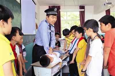 暑假即将来临,为防止学生溺水事故的发生,6月11日,台州市公安局椒江分局区西派出所民警来到辖区学校,开展防溺水安全常识宣传,向小学生讲解如何防溺水、溺水时如何自救等常识。