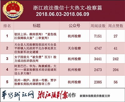 本期检察院排行榜,继前两期名列榜首,这次“杭州检察”依然实力夺冠。其《驳回上诉,维持原判!“蓝色钱江保姆纵火案”二审宣判》一文也广受关注。