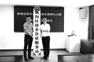 近日,全省首个镇街侨乡公证服务站在温州瓯海区仙岩街道落户。瓯海是著名侨乡,随着城市建设的推进,华侨与侨眷之间的房屋买卖、赠与、继承等方面的公证服务需求日益增多。侨乡公证服务站设立后,将采取“固定坐班+预约到站”的模式,为群众提供家门口的公证咨询、办理服务,真正做到公共法律服务便民利民。