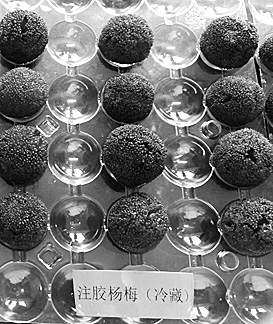 | 约48小时后,注胶杨梅果肉出现塌陷现象 |