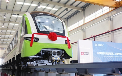 6月13日,中国首列2.0版商用磁浮列车在中车株洲电力机车有限公司磁浮系统厂房下线。
