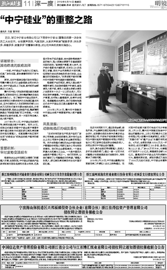 2018年2月26日,衢州市中院裁定中宁硅业由破产清算程序转入破产重整程序。